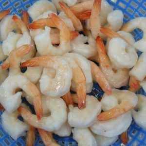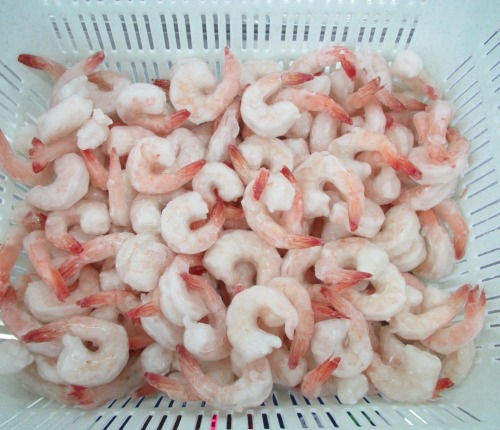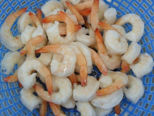 Frozen cooked PD Vannamei shrimp during quality check in Vietnam factory.